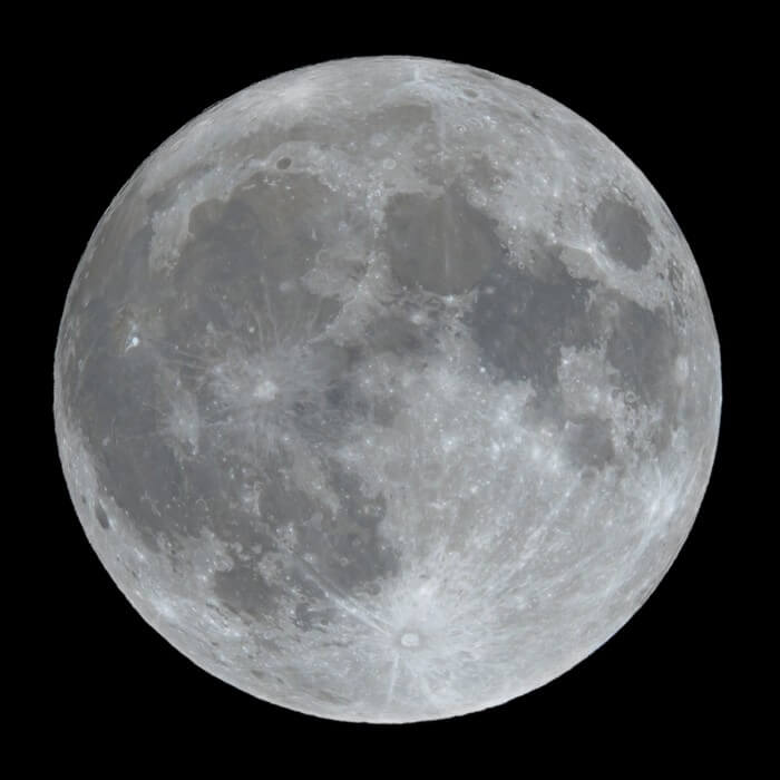 পূর্ণিমায় চাঁদ সূর্য থেকে পৃথিবীর ঠিক বিপরীত দিকে অবস্থান করে। এর কাছের দিক সম্পূর্ণরূপে আলোকিত থাকে। এই সময় চাঁদের পৃষ্ঠ ছায়াহীন ও সমতল দেখায়, যা পর্যবেক্ষণের জন্য খুব উপযোগী নয়। এই পর্যায়ে সূর্য অস্ত যাওয়ার সাথে সাথে চাঁদ উদিত হয় এবং সূর্য উদিত হওয়ার সময় চাঁদ অস্ত যায়। ফলে সারা রাত চাঁদ দৃশ্যমান থাকে।