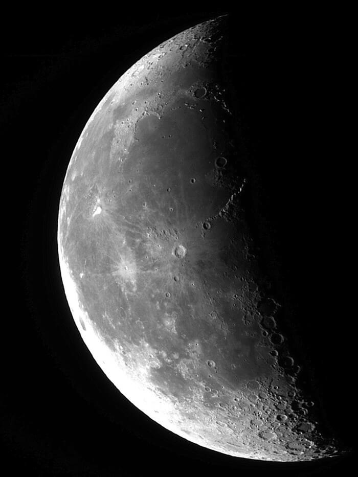 চাঁদ তার কক্ষপথে যাত্রা অব্যাহত রাখে এবং সূর্যালোক চাঁদের পশ্চিম (ডান) প্রান্তে পড়তে শুরু করে। এতে একটি পাতলা ক্রিসেন্ট তৈরি হয়। সকালের টার্মিনেটর পশ্চিম থেকে পূর্বে প্রায় ১৫.৫ কিমি/ঘন্টা বেগে অগ্রসর হয়।
