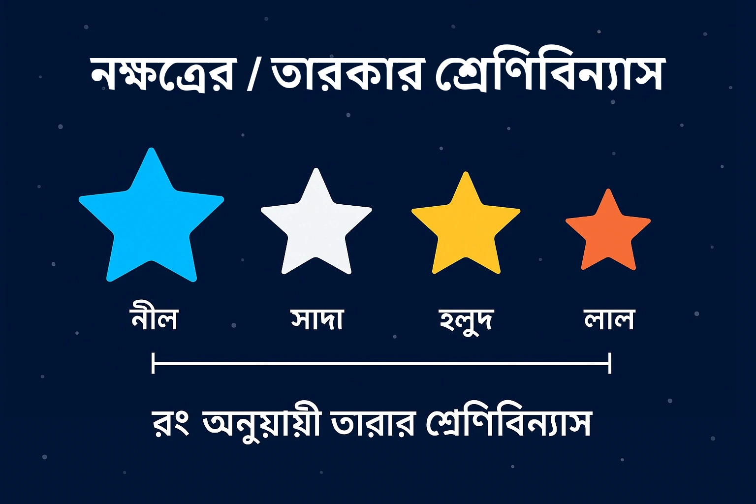 • তারা রঙ অনুযায়ী—নীল সবচেয়ে গরম, লাল সবচেয়ে ঠান্ডা