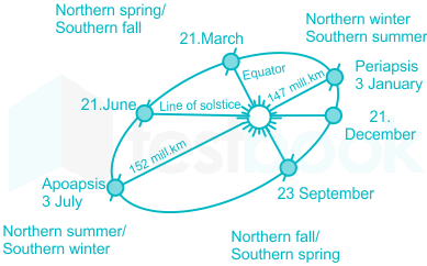 পৃথিবীর প্রদক্ষিণপথ উপবৃত্তাকার হওয়ায় এবং পৃথিবীর অক্ষ (Earth Axis) ২৩.৫ ডিগ্রি হেলে থাকার কারণে পৃথিবী এবং পৃথিবীর বিভিন্ন অংশ বছরের বিভিন্ন সময়ে সূর্য থেকে ভিন্ন ভিন্ন দূরত্বে অবস্থান করে।