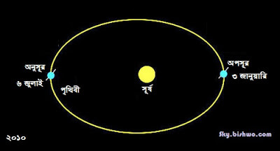 সূর্য ও পৃথিবীর দূরত্ব:অপসূর,অনুসূর,মহাবিষুব, উত্তরায়ন ও দক্ষিণায়ন |